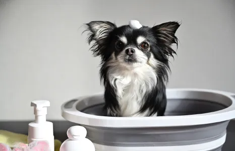 クレンジングシャンプ ー・オイルを使い愛犬のしつこい汚れをケアします。